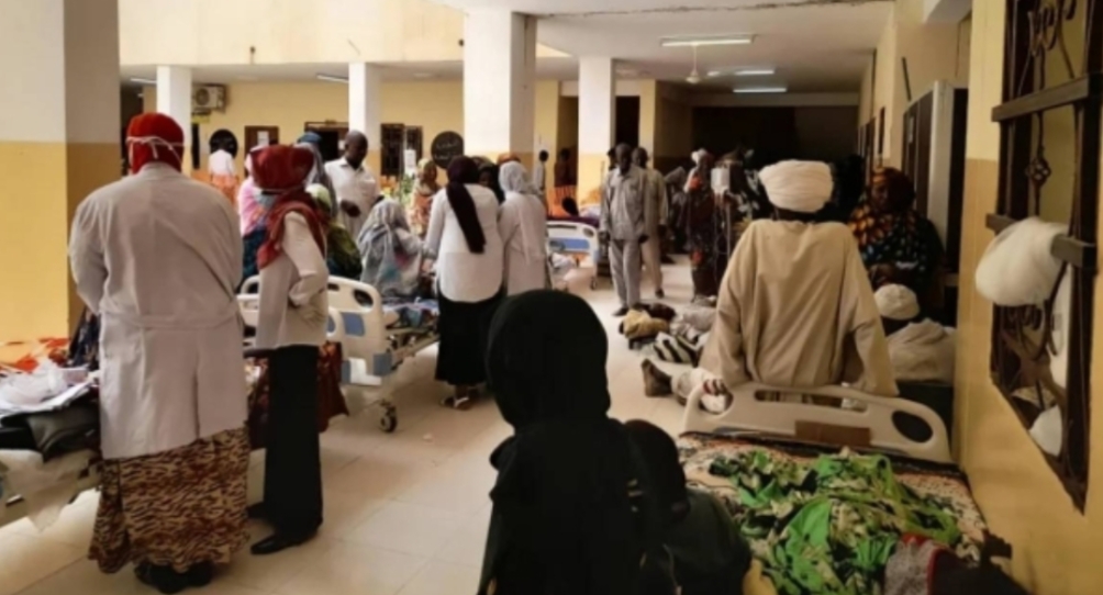 People wait to receive treatment at a hospital in El Fasher, Sudan, in May 2023