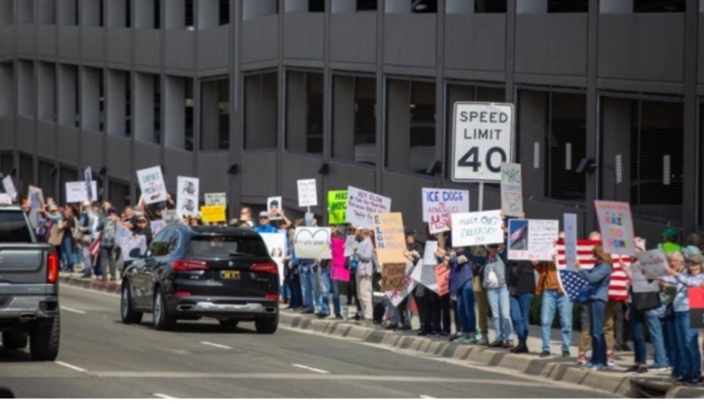 The protest was part of the growing “Tesla Takedown” movement, which has been staging demonstrations at Tesla dealerships across the country in response to Musk’s leadership of the Department of Government Efficiency (DOGE), a position he was appointed to by President Donald Trump.