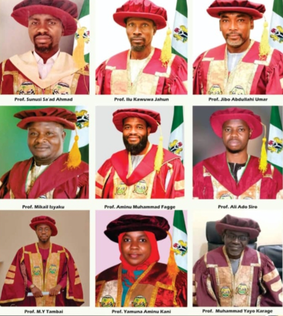 A statement issued by the university Spokesman, Malam Abdullahi Bello, on Friday said the new Professors are Prof. Ehien Alfred, Prof. Muhammad Musa Bako, Prof. Ilu Kasuwa Jahun, Prof. Jibo Abdullahi Umar, Prof. Muhammad Yayo Karage, Prof. Aminu Muhammad Fagge, Prof. Musa Yusuf Tambai, Prof. Ado Ali Siro, Prof. Mikail Umar Isyaku, Prof. Sanusi Saad Ahmad, Prof.Abubakar Adamu Magaji, Prof.Bilyaminu Yusuf Hanga, Prof. Felix Y.Eguda and Prof. Yamuna Kani.