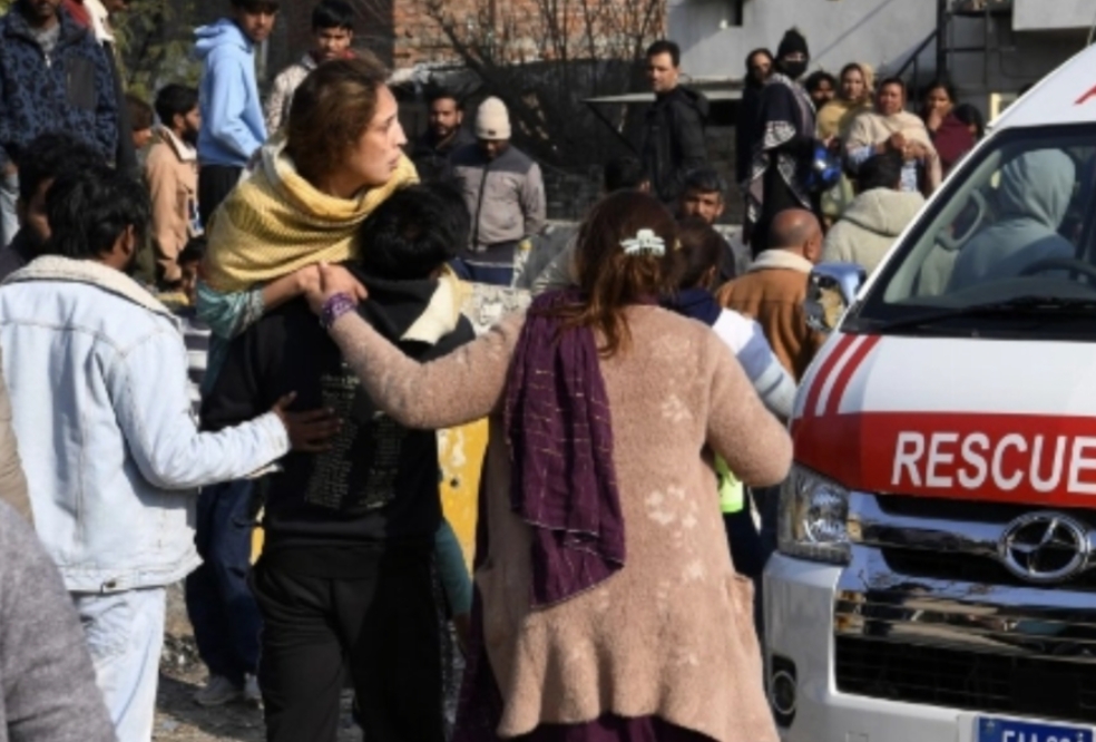 People assist an injured person at the scene of a gas cylinder blast in Islamabad, Pakistan, 11 January 2026. (EPA) via SG.