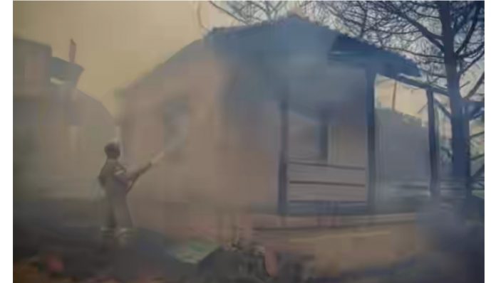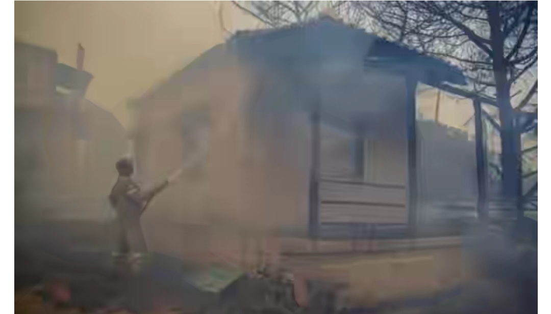 The fire came very close to the resort and at least one house was engulfed by the flames.