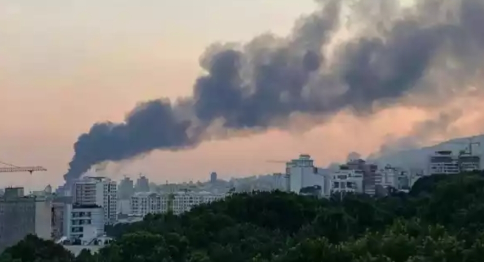 Smoke billowed from the headquarters of Iran’s state broadcaster following the Israeli air strike.