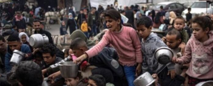 Children living on the streets, after being forced from their homes by Israel’s bombardment, cry and fight over stale bread. Others reportedly walk for hours in the cold searching for food, risking exposure to Israeli strikes.