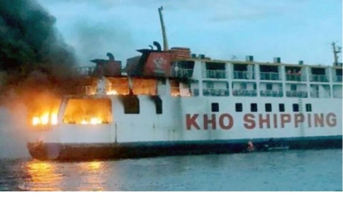 Report from Manila, the Capital of Philippines says, a Ferry carrying 120 passengers and crew members has caught fire at sea.