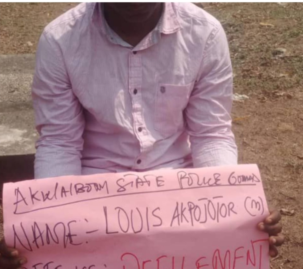 Report from Akwa Ibom State, South South Nigeria says, the State Police Command, has paraded one Louis Akpojotor Mevoweoyo, a Pastor residing in Ibiono Ibom LGA of the state for alleged defilement of his daughter, (name withheld.)