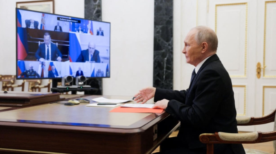 Russian President Vladimir Putin chairs a meeting with members of the Security Council via a video link in Moscow, Russia November 14, 2025 (photo credit: SPUTNIK/GAVRIIL GRIGOROV/POOL VIA REUTERS) via TJP.