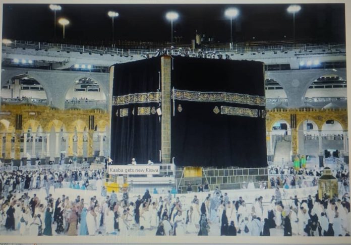 General Presidency for the Affairs of the Grand Mosque and the Prophet’s Mosque adorned early Saturday the Holy Kaaba with a new cover (Kiswa) Saudi Gazette reports.
