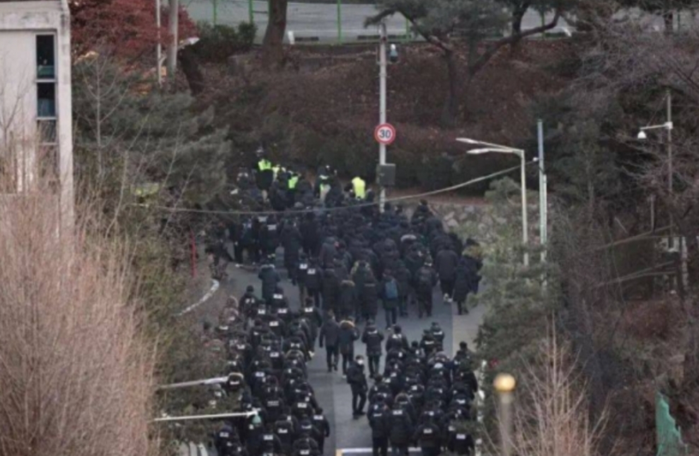 Investigators from the anti-corruption agency make their way to the residence of impeached President Yoon Suk Yeol to execute an arrest warrant, Jan. 15, 2025