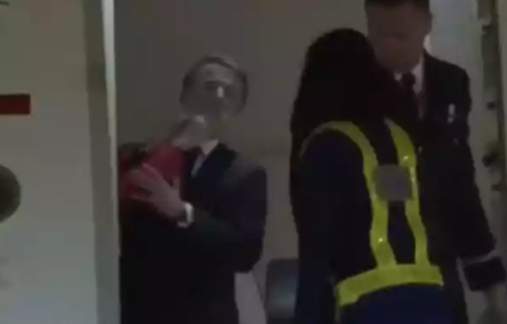 Footage captured by the Associated Press on Sunday evening in Hanoi shows the aircraft door opening and Macron appearing at the threshold.