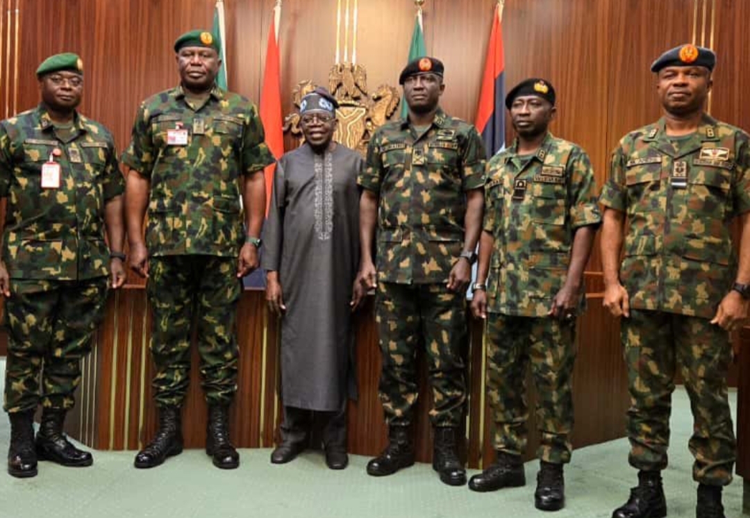 President Bola Ahmed Tinubu is currently meeting with the newly appointed service chiefs at the Presidential Villa, Abuja, Nigeria’s capital.