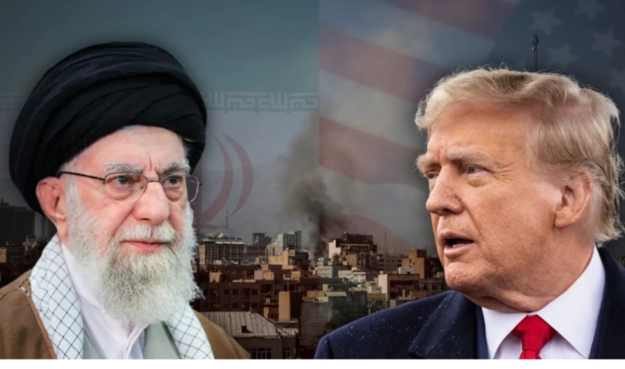 L to R: Iran Ayatollah Ali Khamenei, US President Donald Trump against backdrop of respective flags and missile strikes.(photo credit: emarto from Getty Images, Kaboompics.com from Pexels, ILLUSTRATION, Shutterstock/lev radin, wikimedia commons, Hamid Amlashi/WANA (West Asia News Agency) via REUTERS, e) via TJP