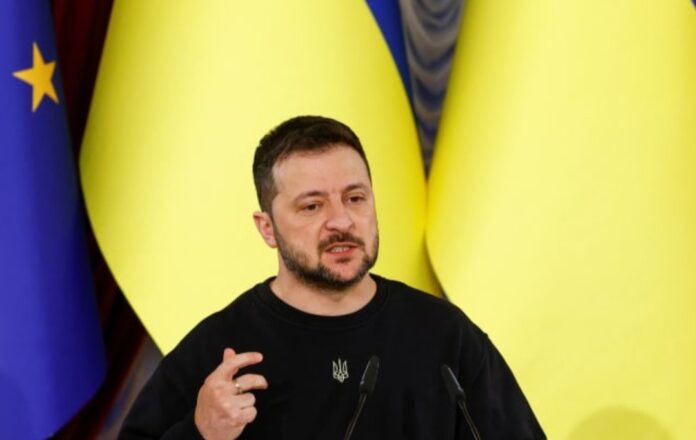 Ukraine’s President Volodymyr Zelensky attends a joint press conference with Moldova’s President Maia Sandu and President of the European Council Charles Michel, amid Russia’s attack on Ukraine, in Kyiv, Ukraine November 21, 2023 (photo credit: VALENTYN OGIRENKO/REUTERS) via TJP